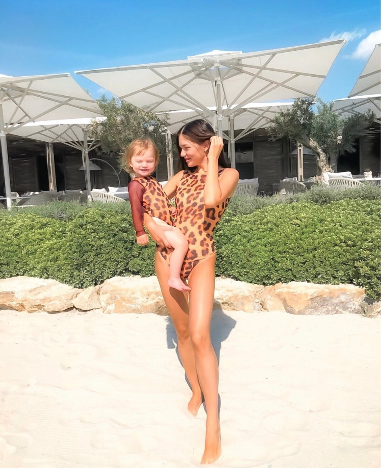 KID's girl's One-piece swimsuit with sleeves LEOPARD