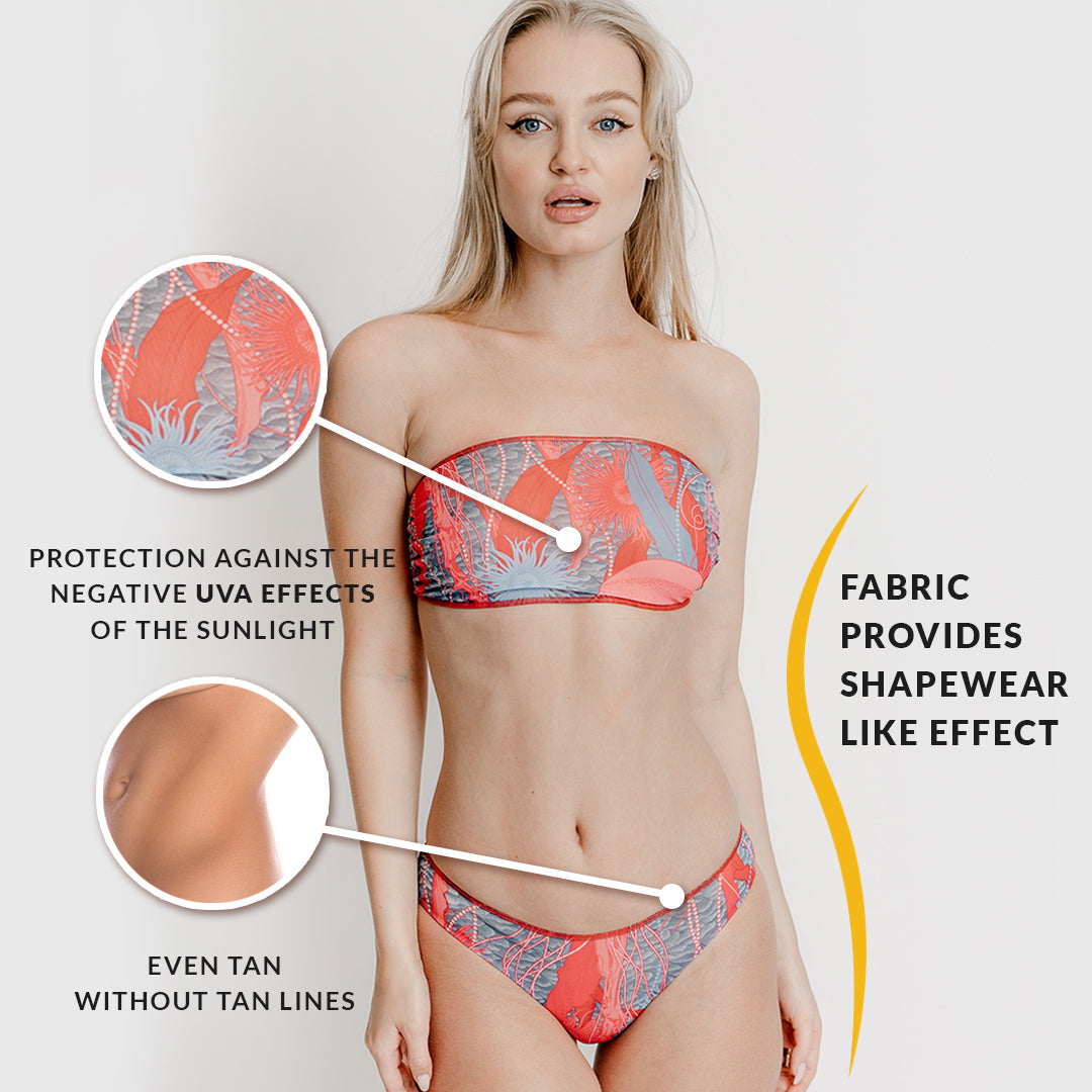 楽なストラップレス スタイルで自由な見た目と感触を演出する Bando ブラとクラシック ビキニ パンティーは、軽くて快適です。そして、ほぼ瞬時に乾きます。