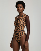 フード&レース付きレオパード柄ワンピースノースリーブ水着