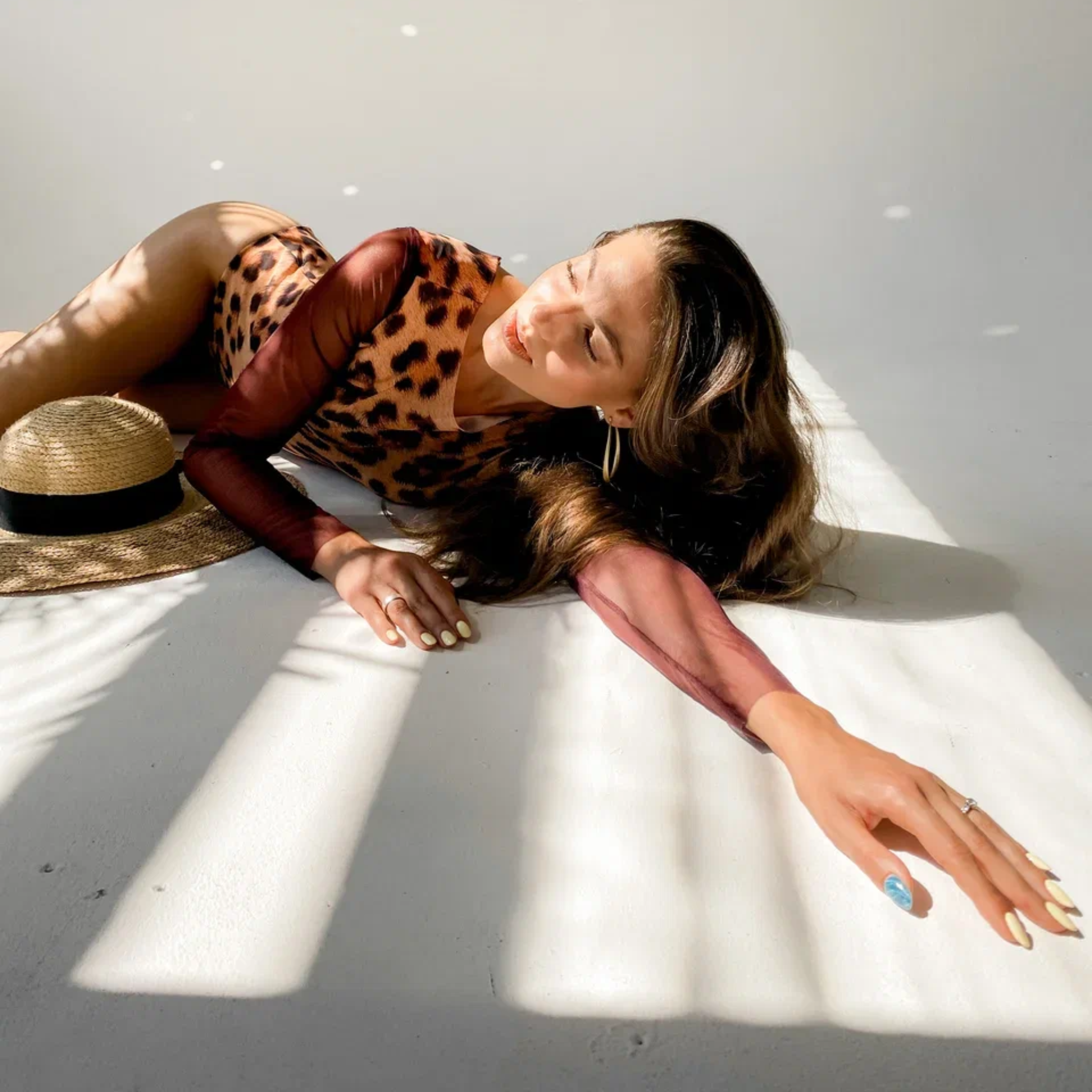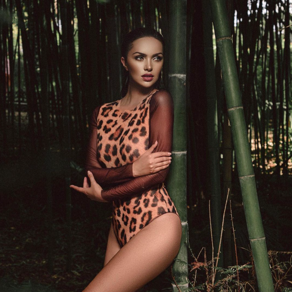 袖付きヒョウ柄水着