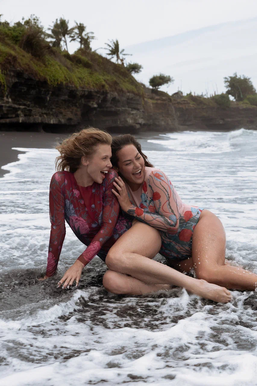 Committed to sustainability from the ground up. From recycled packaging, fibers, and even earth-inspired prints. Because we think swimwear should help clean up our waters, not pollute them.